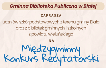 Serdecznie zapraszamy uczniów szkół podstawowych z terenu Gminy Biała oraz bibliotek gminnych i szkolnych z powiatu wieluńskiego do udziału w Międzygminnym Konkursie Recytatorskim! To doskonała okazja,